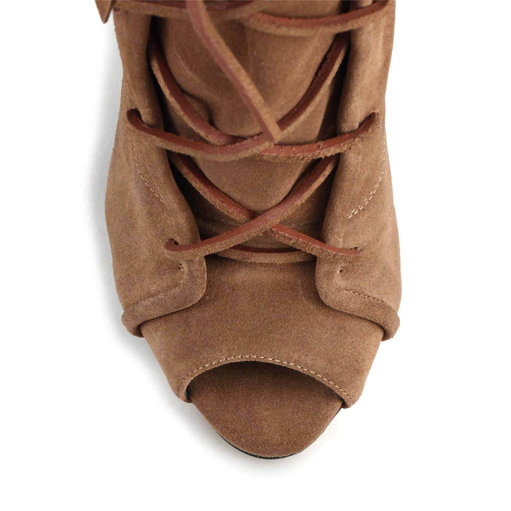 Handmade Fish mouth sandals stiletto tassel boots suede strappy ankle boots