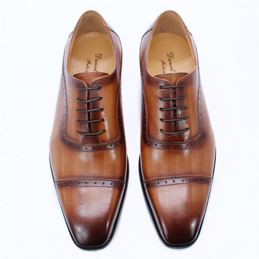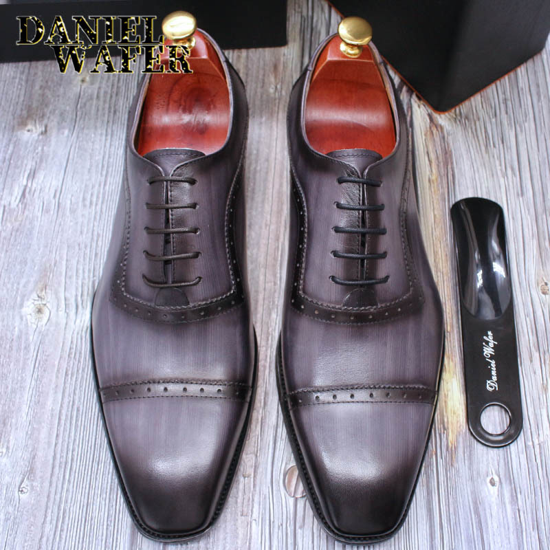 Men's three-joint business handmade genuine leather brogue oxford wedding shoes 3 colors