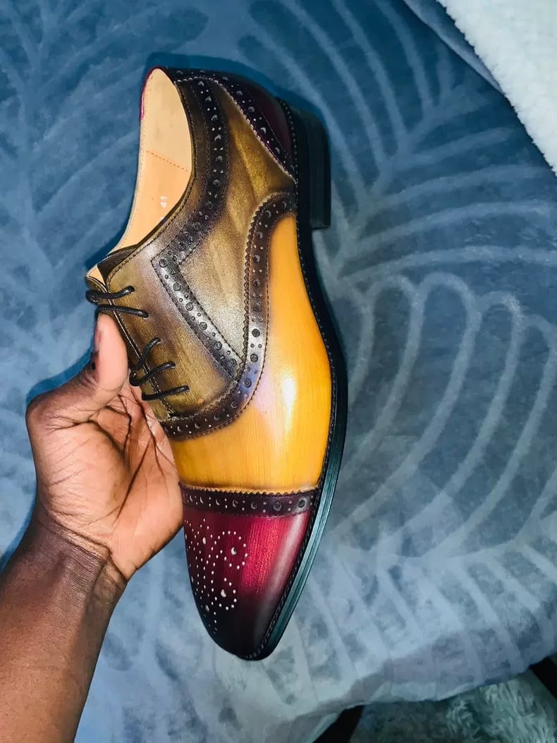 Handmade Two-tone Oxford shoes leather mixed color strap retro Bolk carving shoes