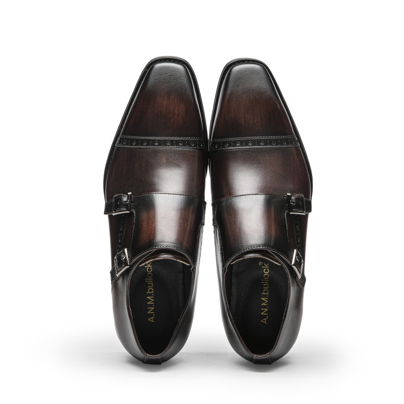 Handmade men's shoes cowhide geniune leather Monk shoes