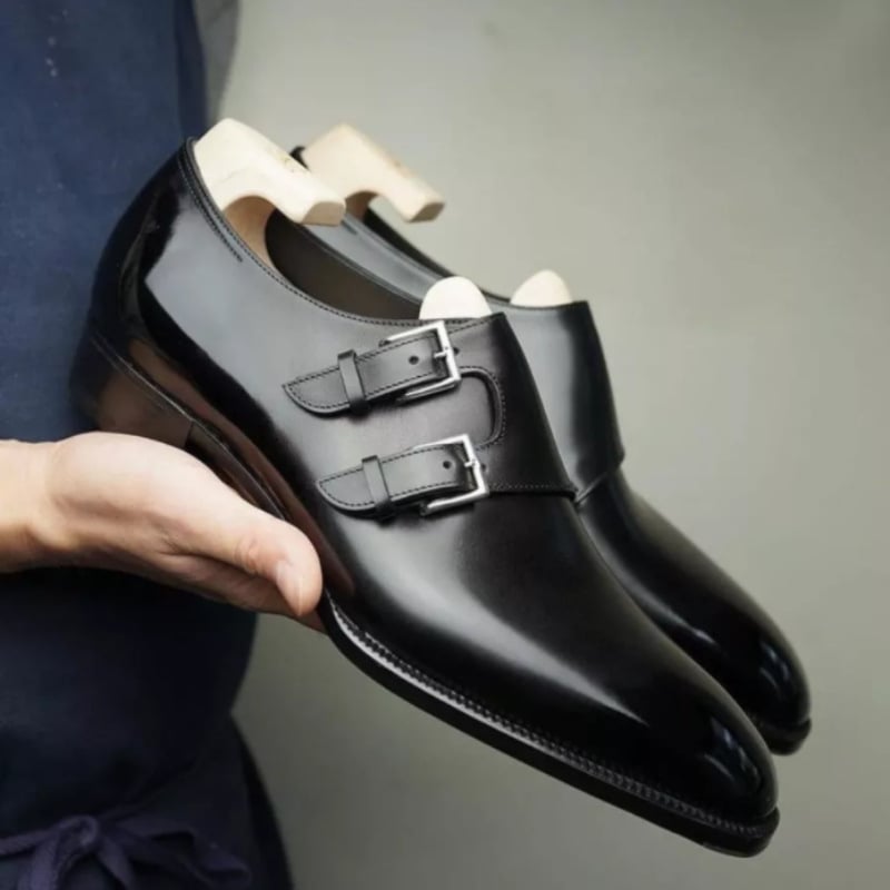Monk Shoes Men's PU Low Heel Solid Color Double Buckle Professional Non-slip Business Formal Shoes