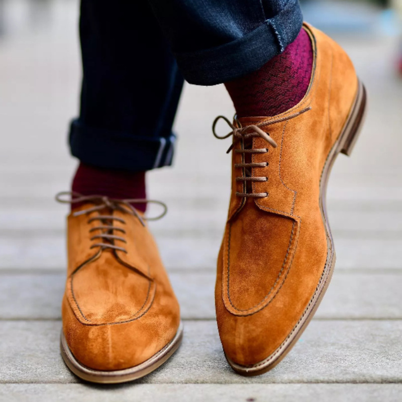 Oxford Shoes Men Suede Low Heel Lace Up Business Dress Shoes