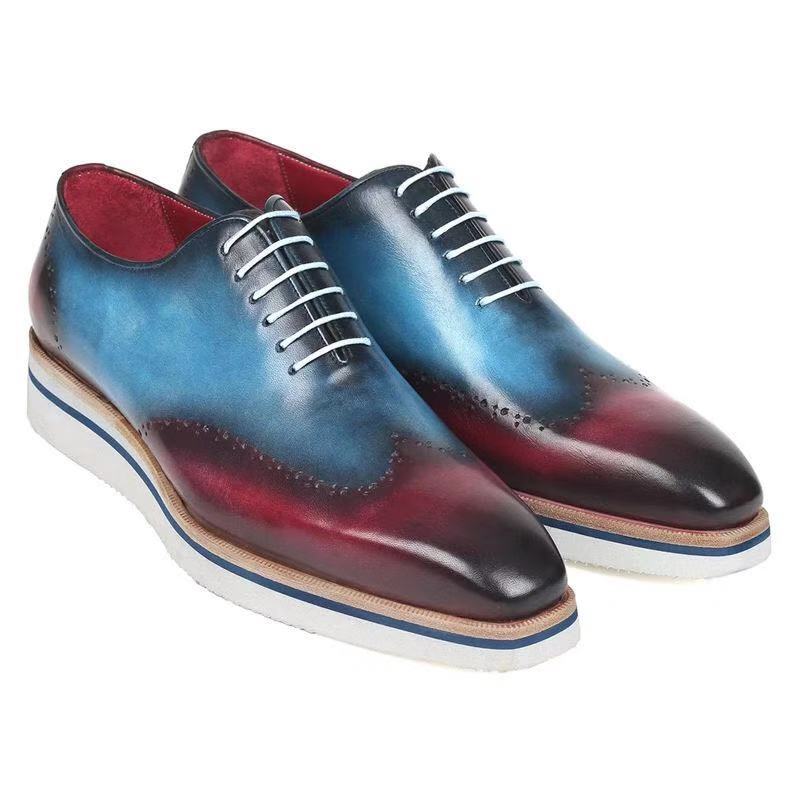 Fashionable round toe color block flat heel leisure car stitching lace up casual men's shoes