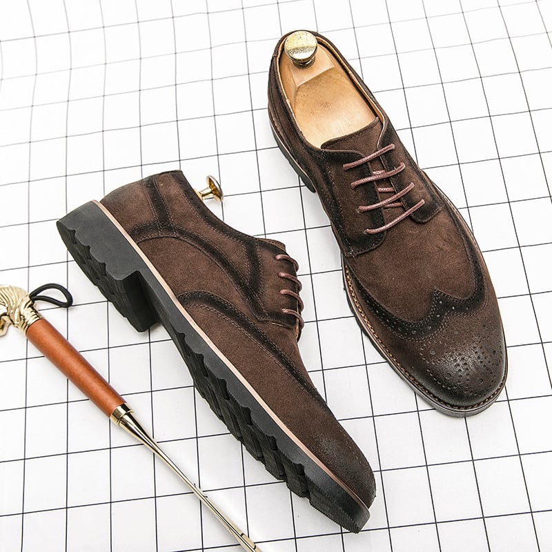 Brogue men's lace-up frosted leather shoes men's business shoes 3 colors