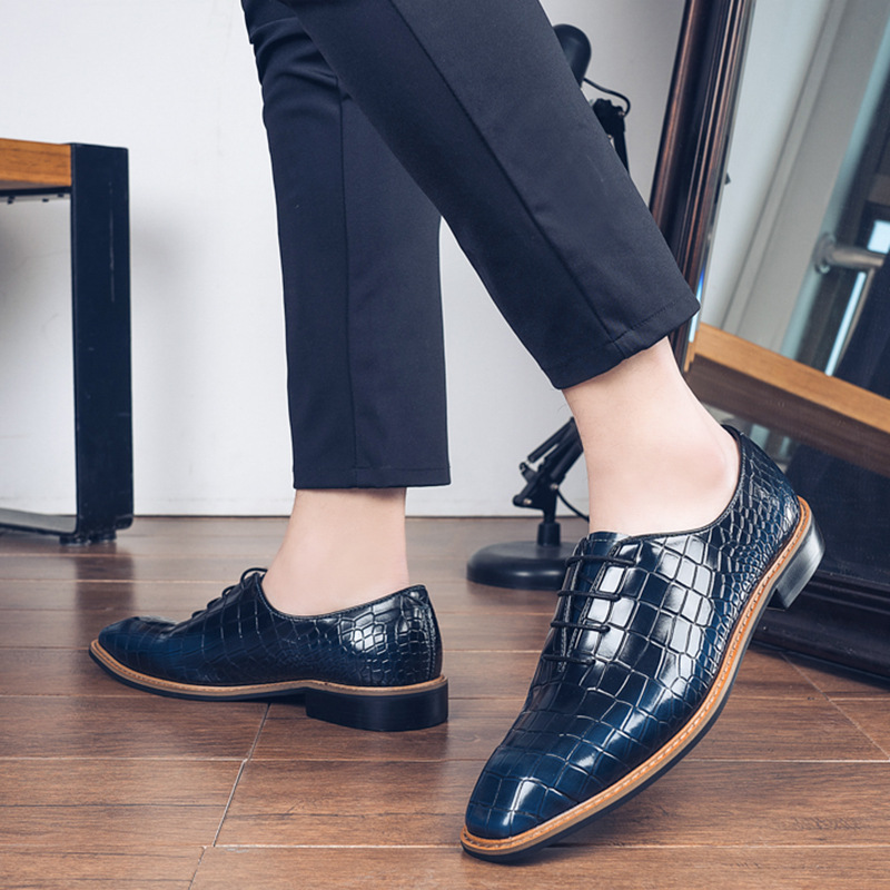 Summer breathable patent leather fashion gradient stone pattern embossed business dress shoes