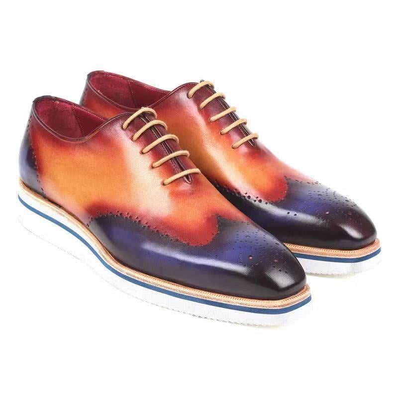 Fashionable round toe color block flat heel leisure car stitching lace up casual men's shoes