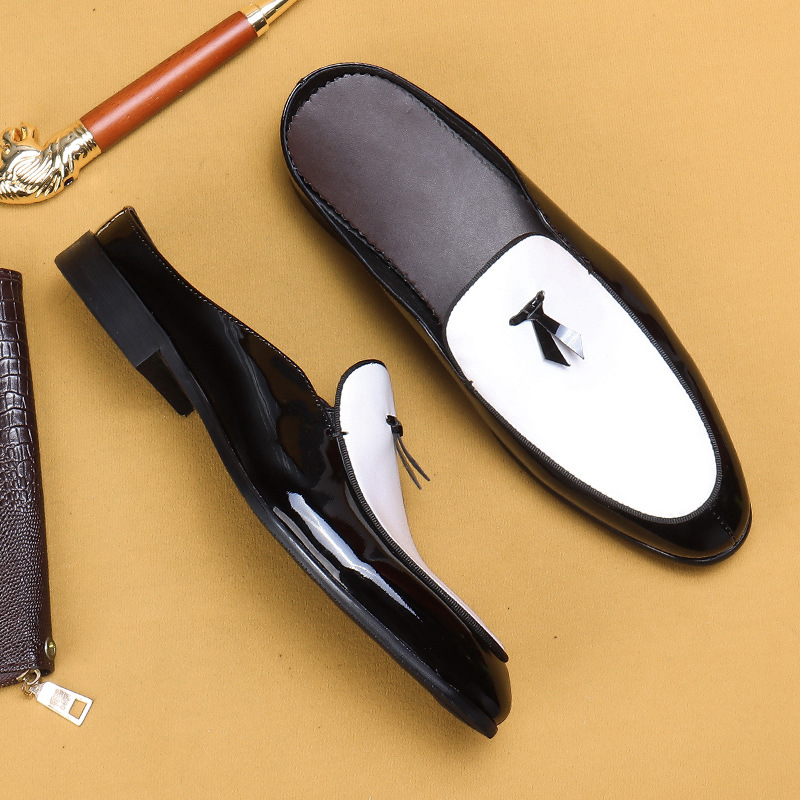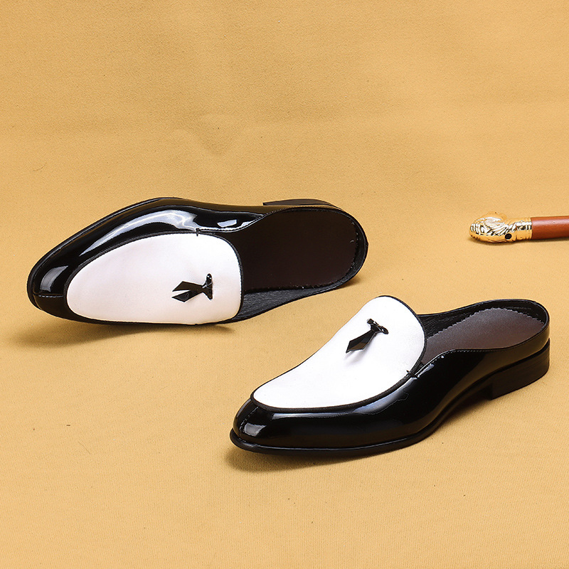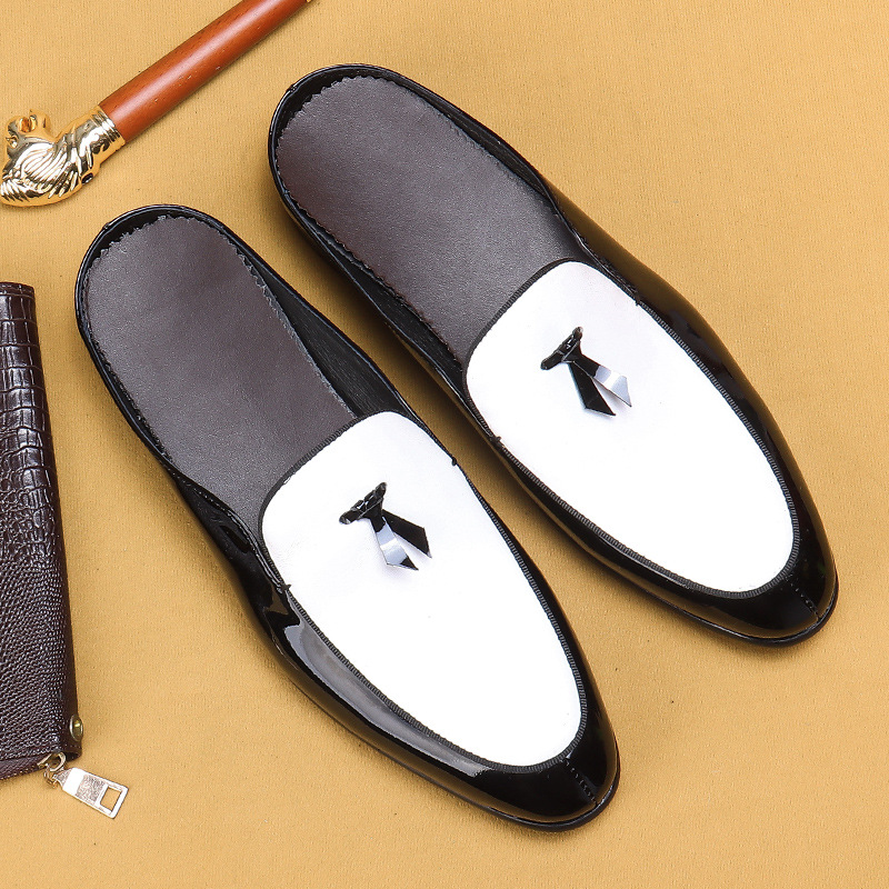 Office slippers men's summer leather breathable business semi-slippers mules