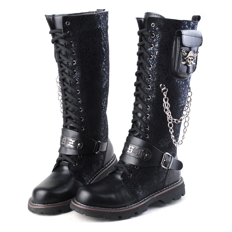 Punk rock boots PU leather skull iron chain lace-up cowboy thick-soled trendy stage Martin boots