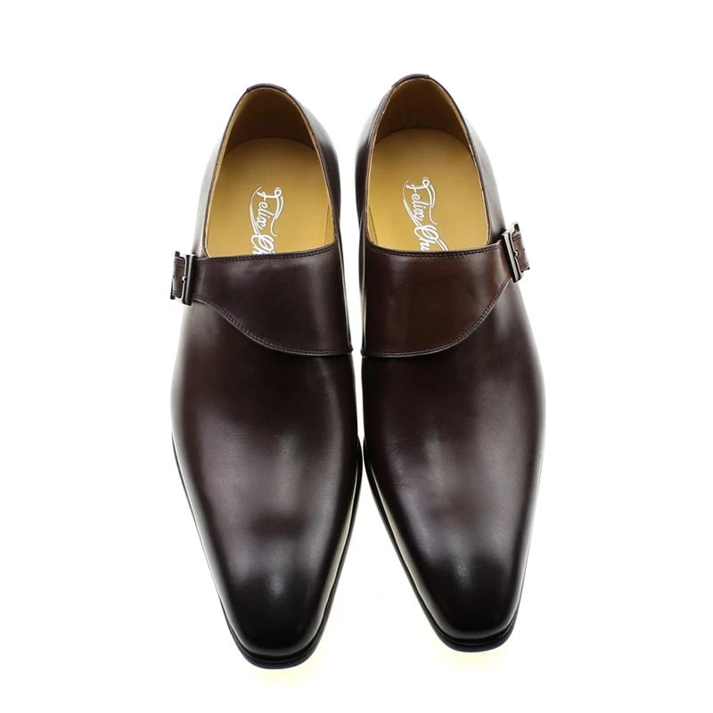 Pointed toe single buckle business casual men's genuine leather formal shoes 2 colors