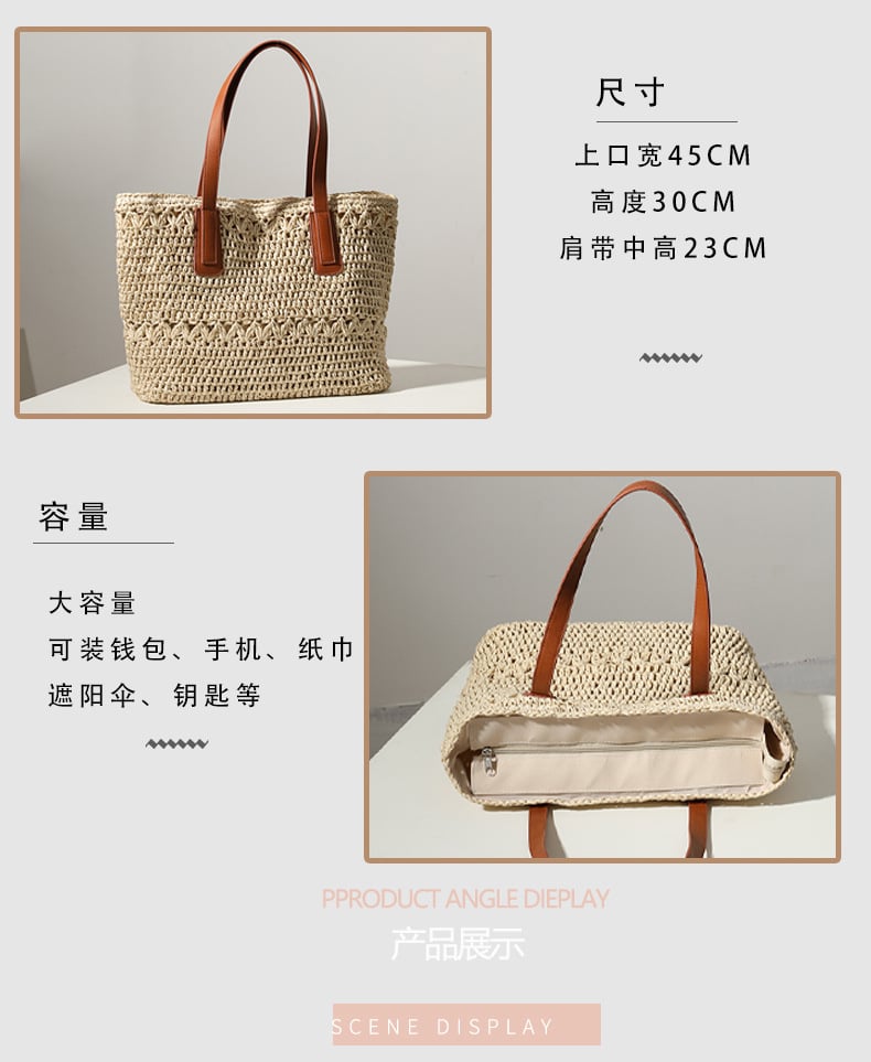 Woven bag female straw woven bag one-shoulder portable large-capacity rattan bag holiday beach bag