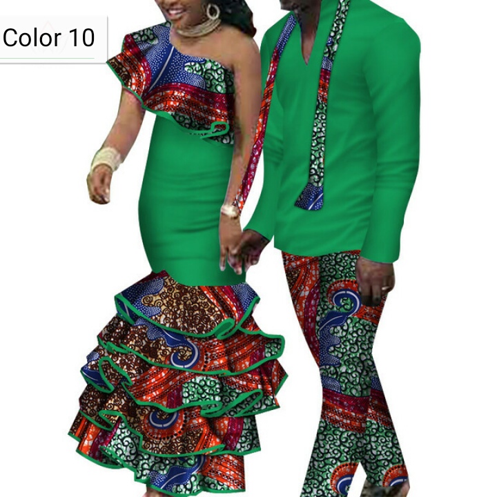 African couple Cotton clothing African ethnic wax printing Skirt and Men's Shirt and Pants