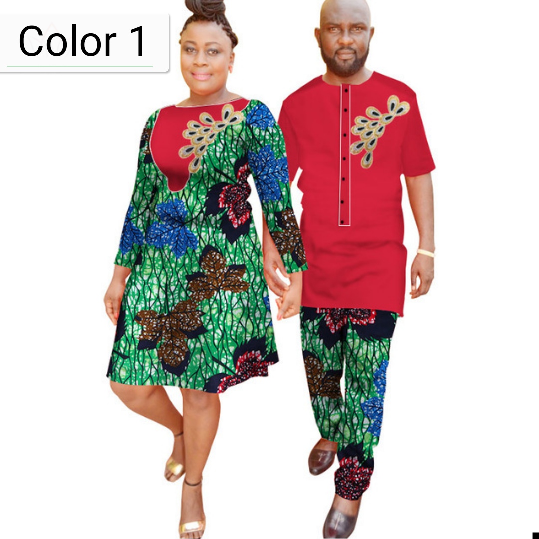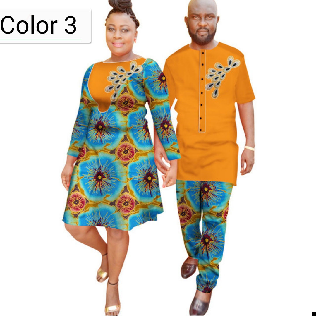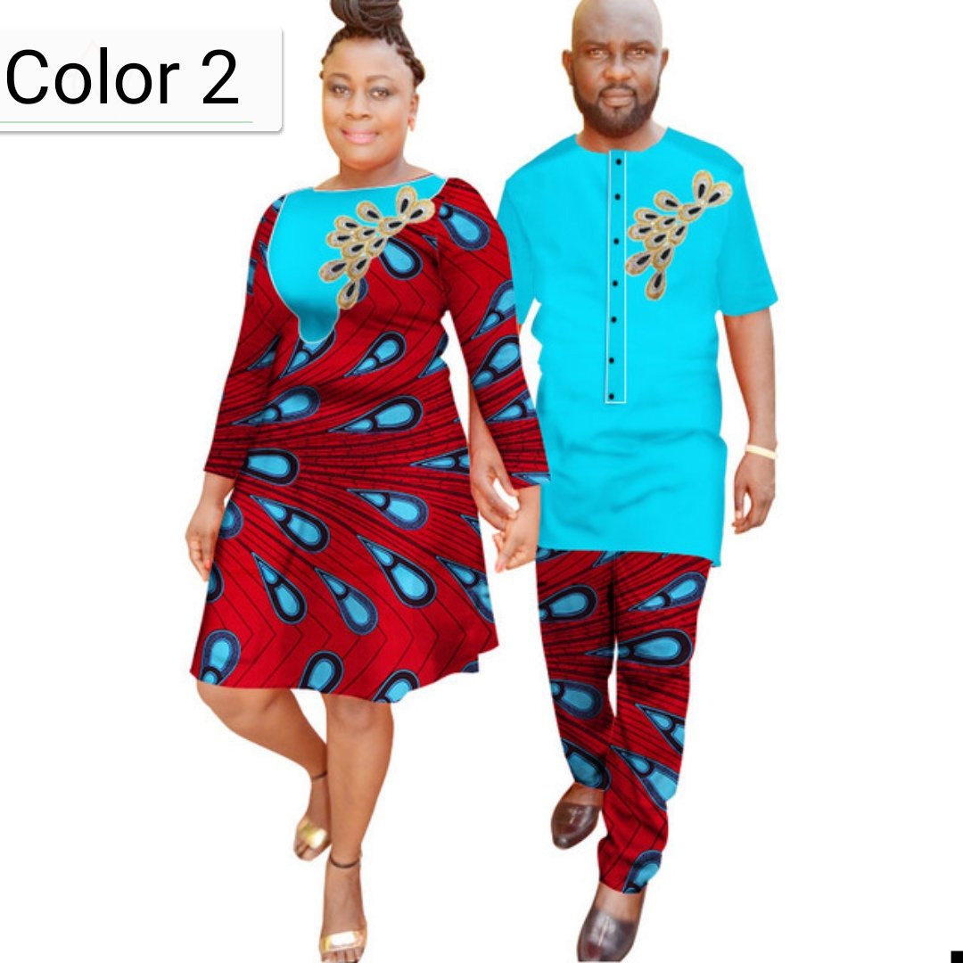 African couple Cotton clothing African ethnic wax printing Skirt and Men's Shirt and Pants