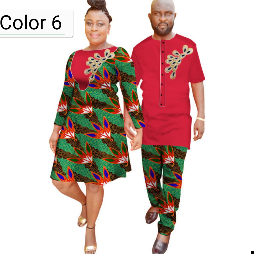 African couple Cotton clothing African ethnic wax printing Skirt and Men's Shirt and Pants