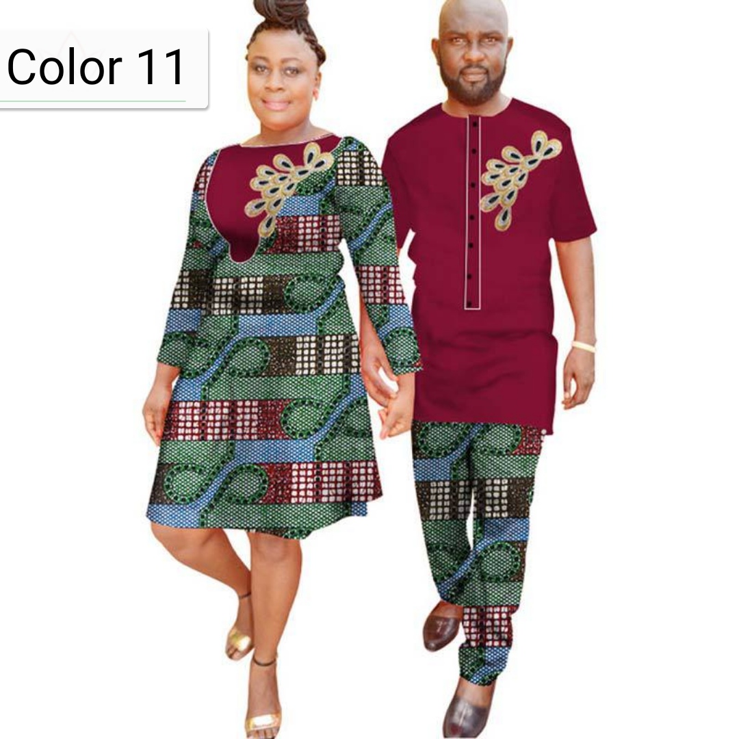 African couple Cotton clothing African ethnic wax printing Skirt and Men's Shirt and Pants