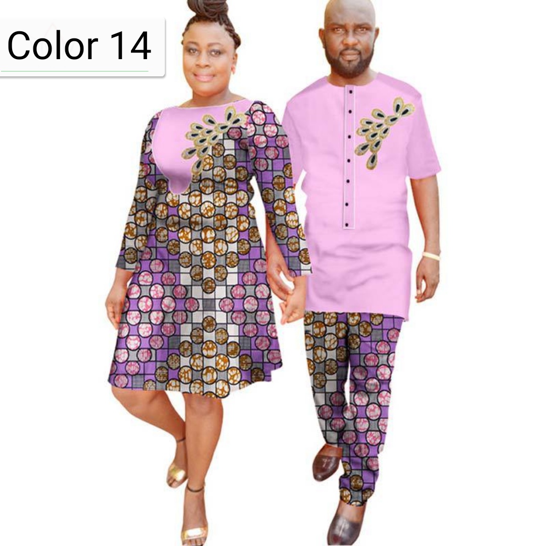 African couple Cotton clothing African ethnic wax printing Skirt and Men's Shirt and Pants