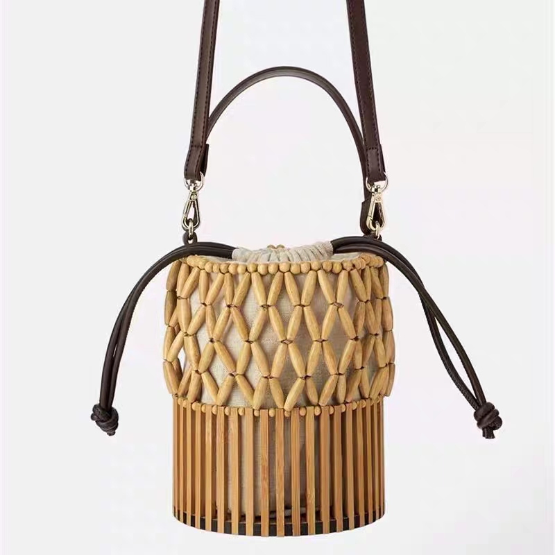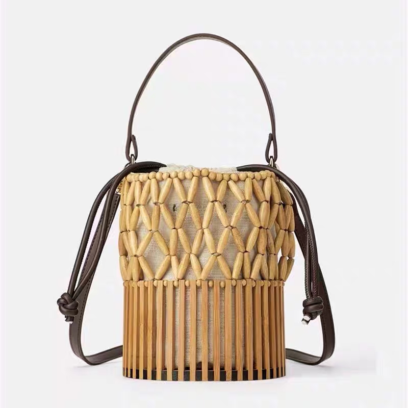 Bamboo Wooden Weaving Barrel Handbag HANDWOVEN, carrying handbag, Tote Bag