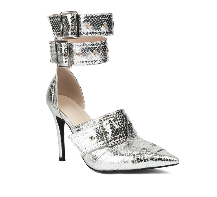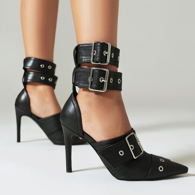 Women's pointed toe ankle strap stiletto high heel shoes 5 colors