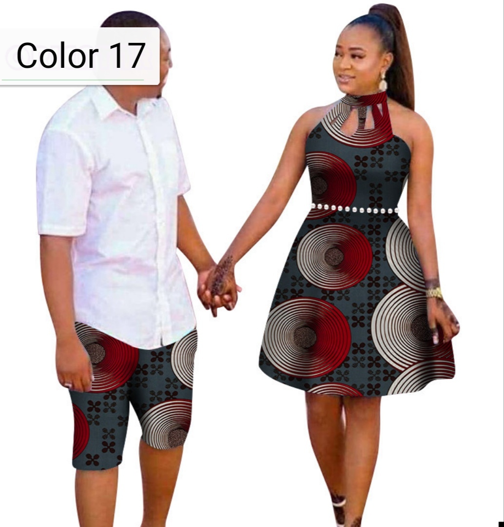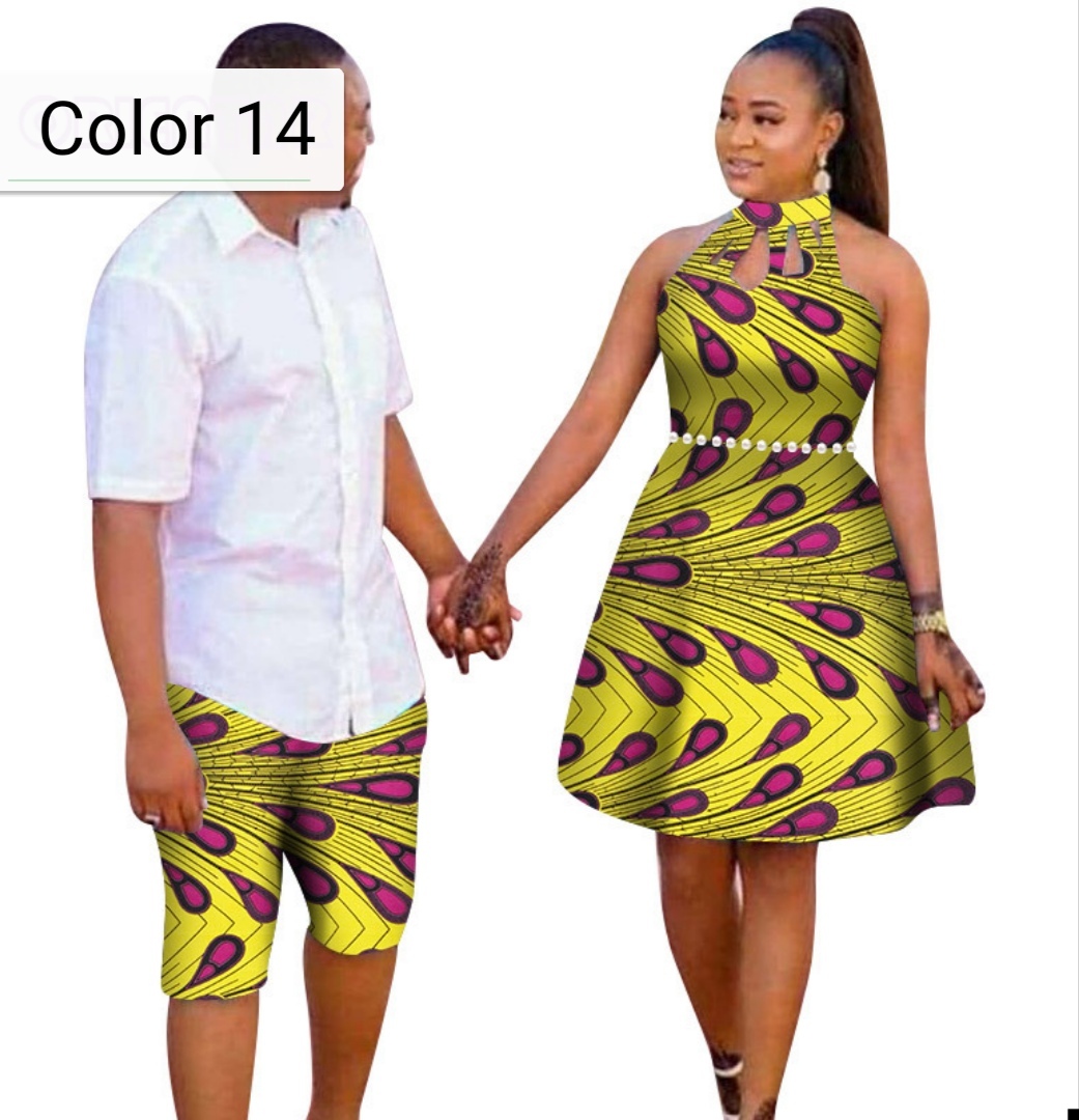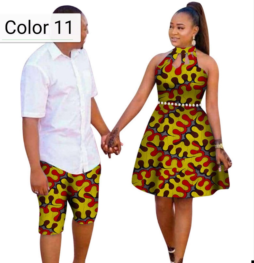 African couple Cotton clothing wax printing Women Dress and Men's Shirt Pants