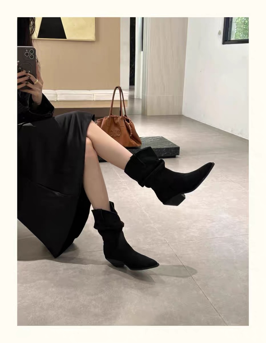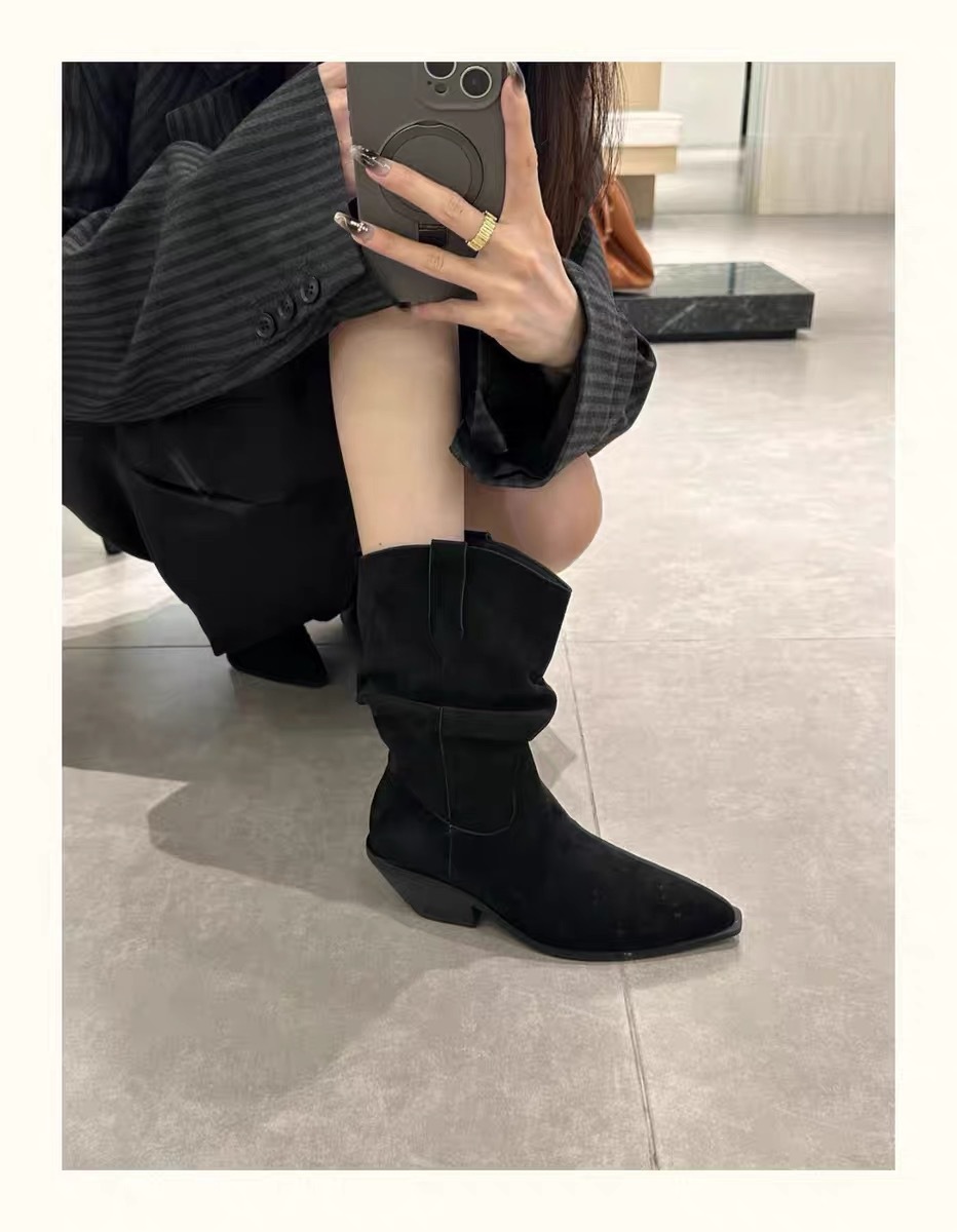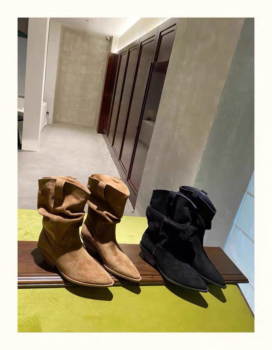 New style pointed retro short boots genuine leather martin boots