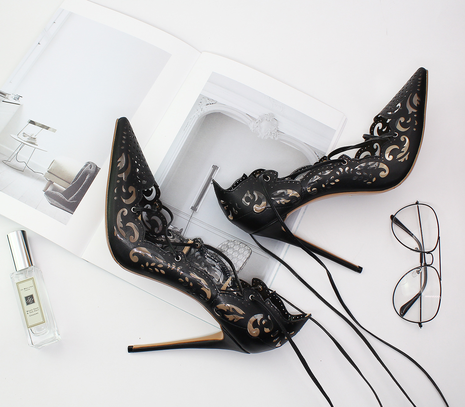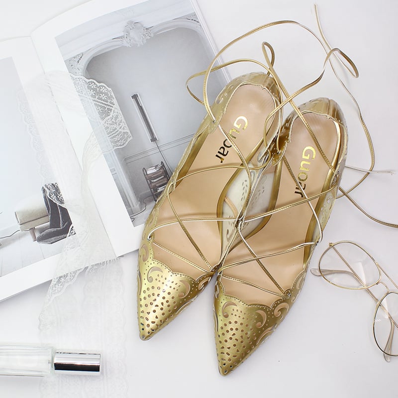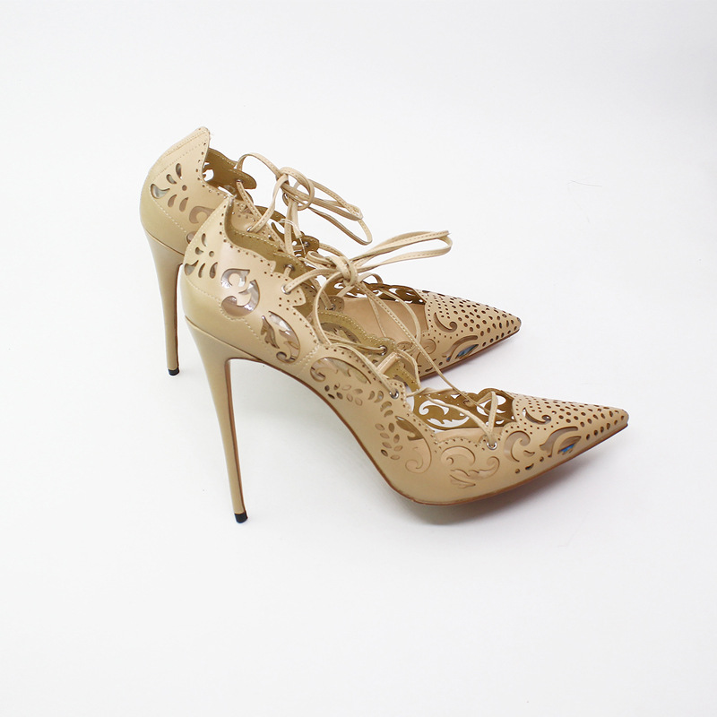 Openwork pattern pointed shallow mouth straps 12 cm fine high heel versatile sexy ladies single shoes 5 Colors