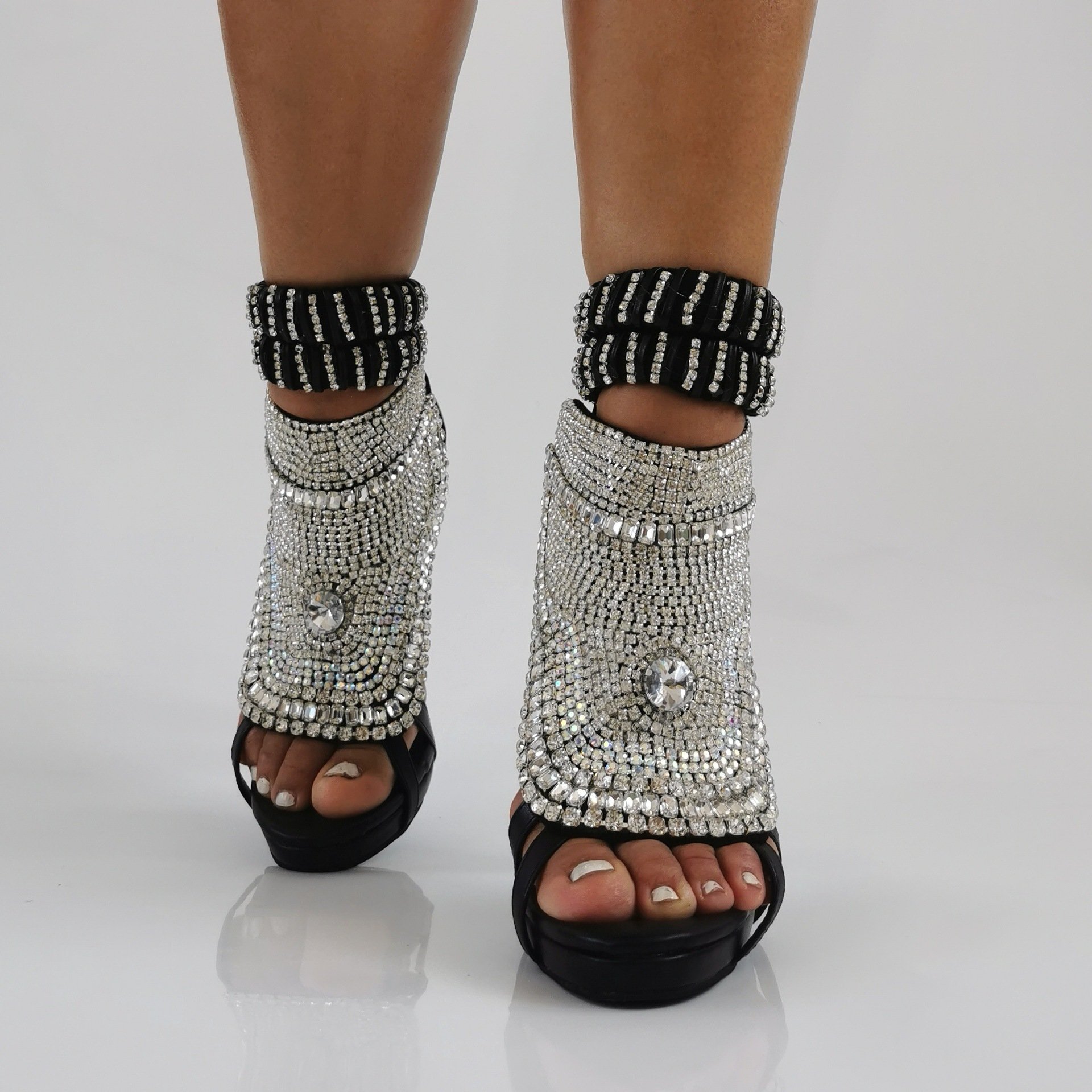 Sexy rhinestone stiletto large size party high heel women's sandals 4 Colors