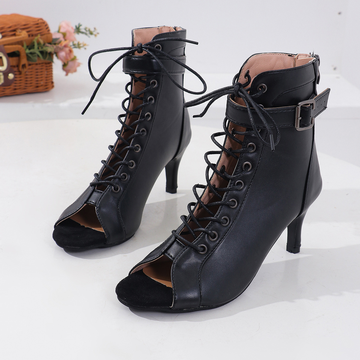Patent leather peep-toe front lace-up belt buckle back zipper stiletto high-heeled sandals