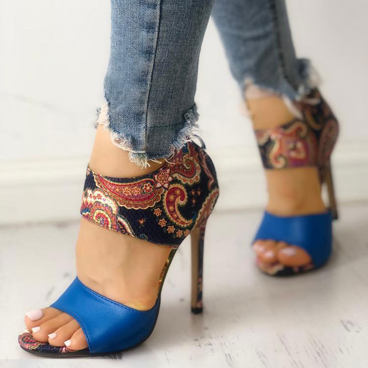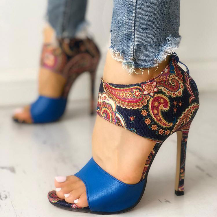 High heel zipper stiletto large size floral open toe sandals