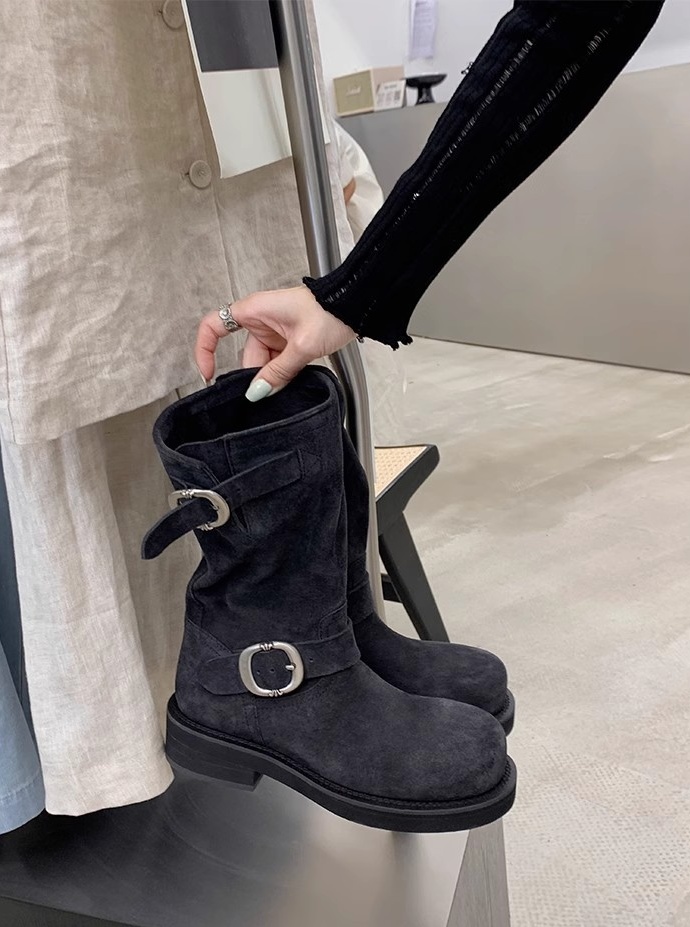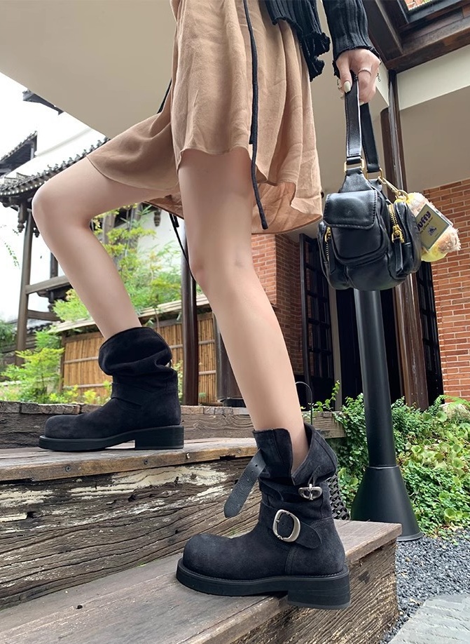 Retro metal buckle rubbed color martin boots genuine leather motorcycle boots 2 colors