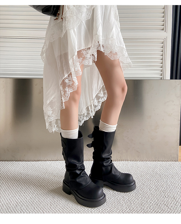 Retro trouser boots pleated knight boots thick-soled long boots
