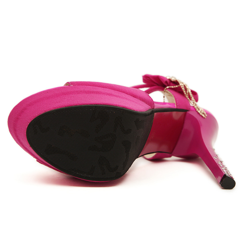 Women's thin heel waterproof platform T-shaped buckle bow diamond high heels 3 colors