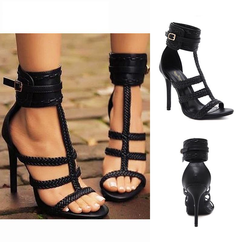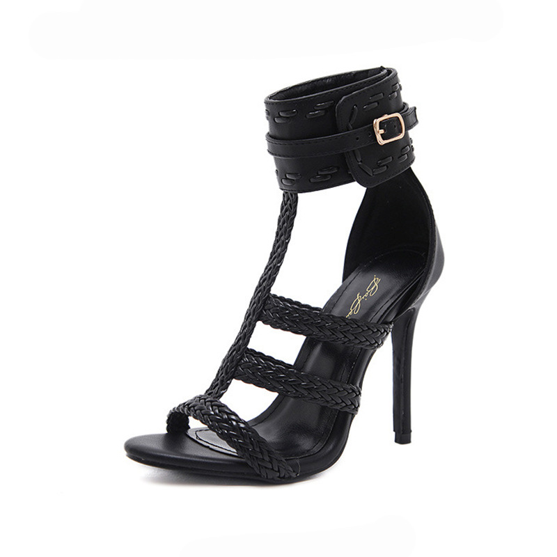 Women high heels Women's Sandals Braided T-Belt Buckle Stilettos