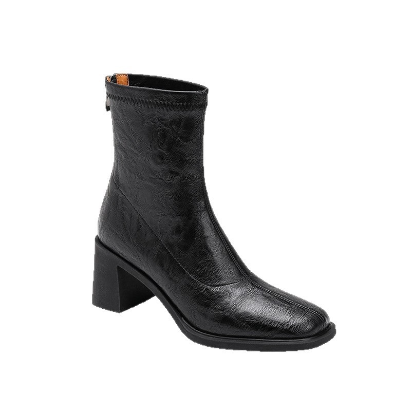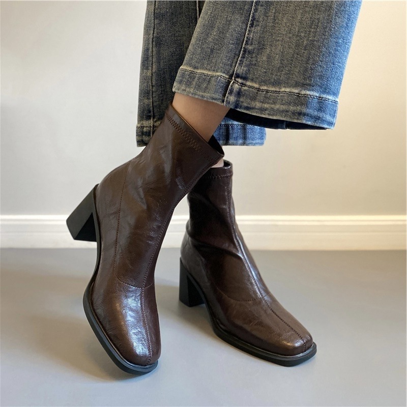Geniune leather high-heeled elastic soft sole retro thick-heeled boots 2 colors