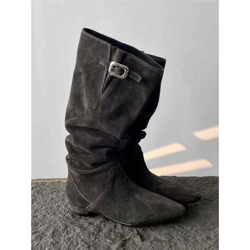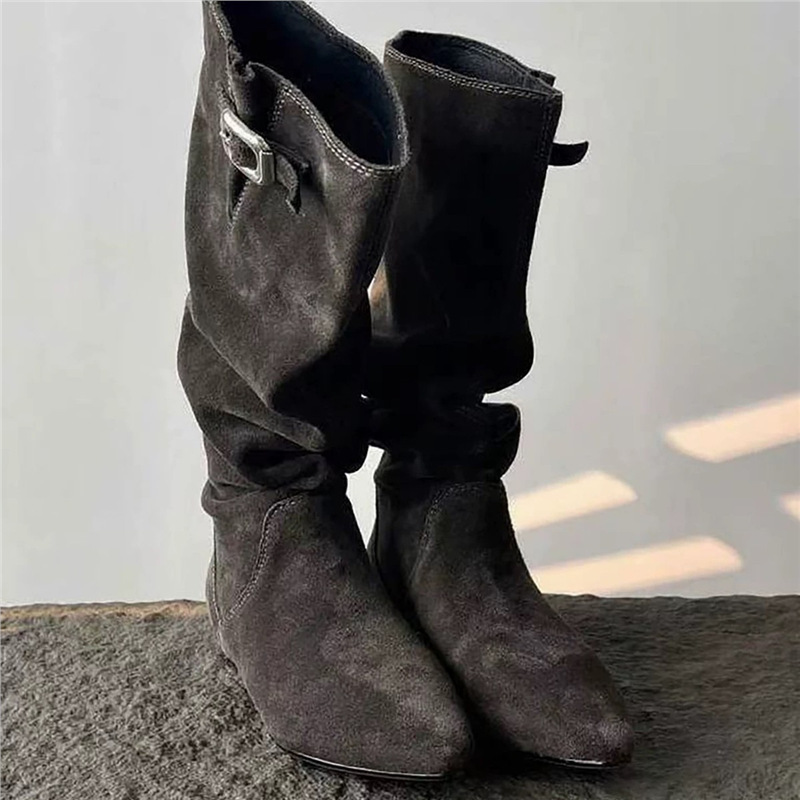 Sheepskin slimmer boots with belt buckle women's knight boots