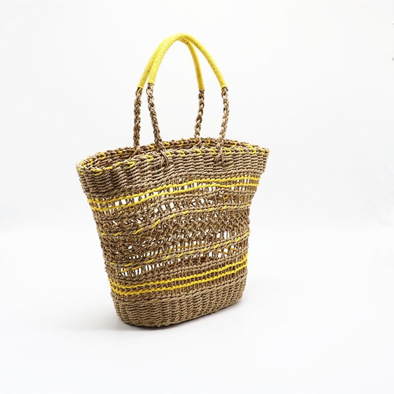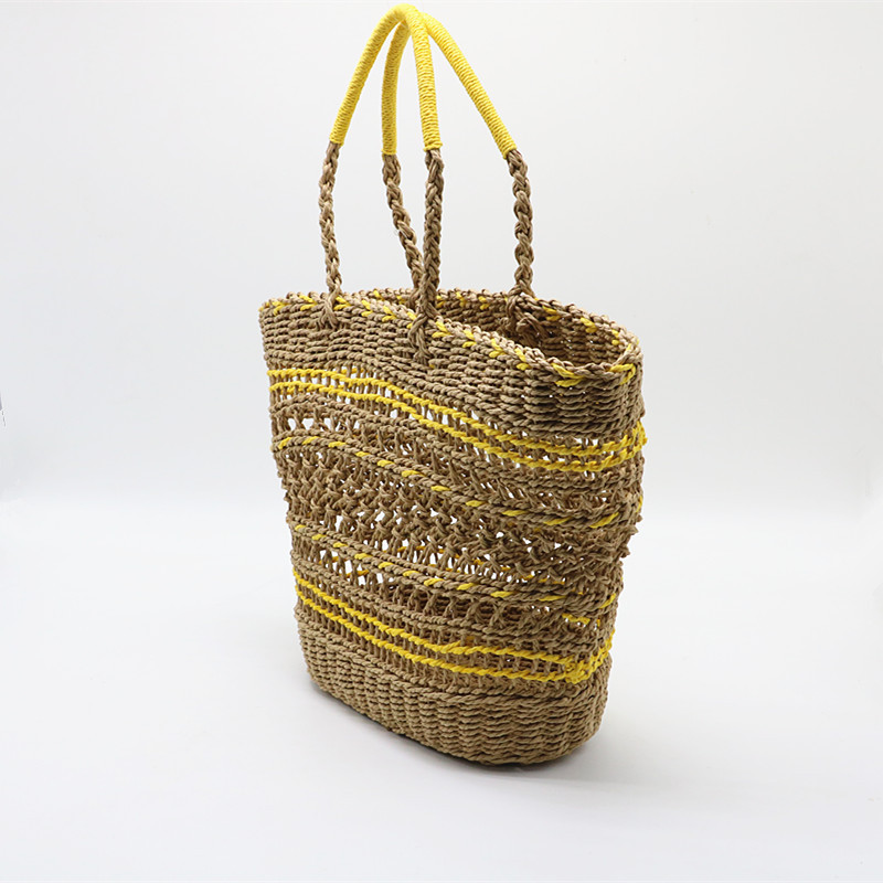 Hollow straw bag yellow one-shoulder beach bag hand-woven women's bag
