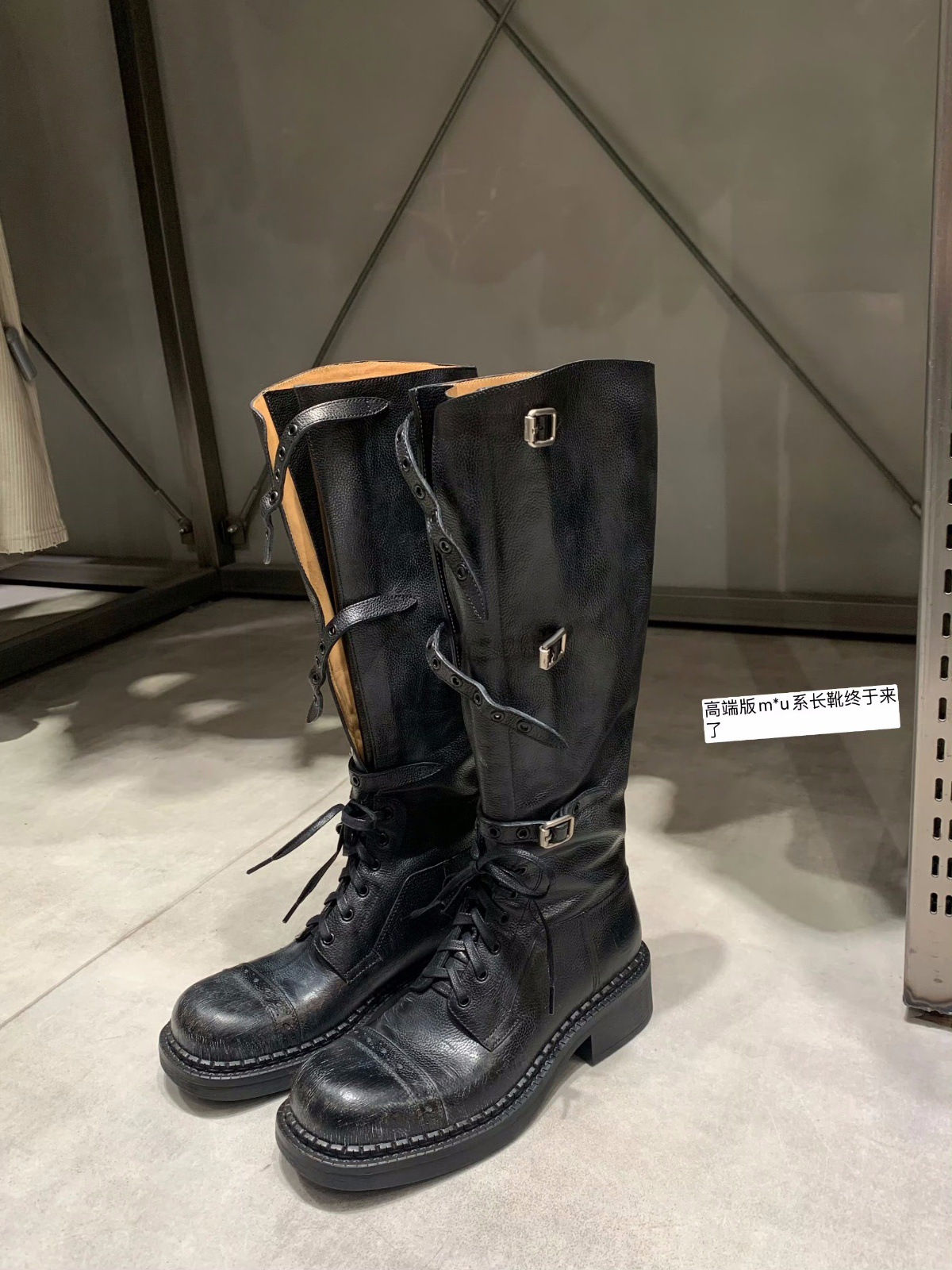Fine leather buckle retro thick heel long knight boots 2 colors