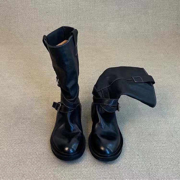 Cowhide Desert Vintage Knight Boots Women's Belt Buckle Washed Genuine Leather