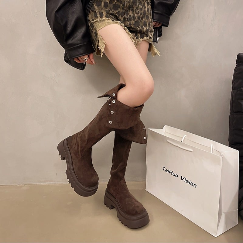 Suede thick-soled boots Maillard slim high-top knight boots 3 colors