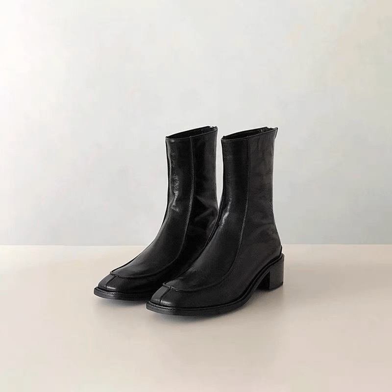Handmade thick heel women's new fashion soft leather mid-calf genuine leather Martin boots