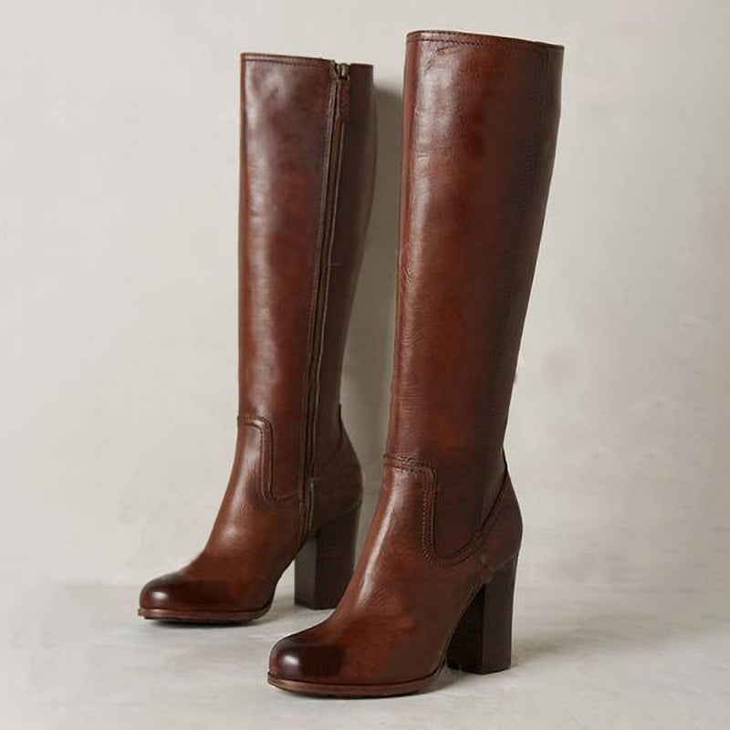 Side Zipper High Block Heel Ladies Plus Size Fashion Boots