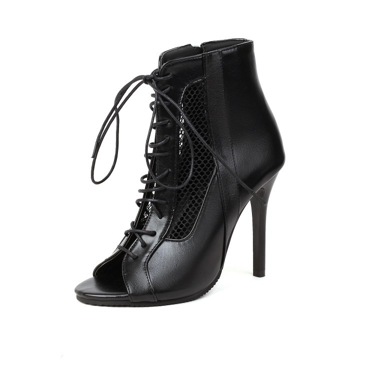 Large size fish mouth women's back zipper high heel stiletto short hollow sandals
