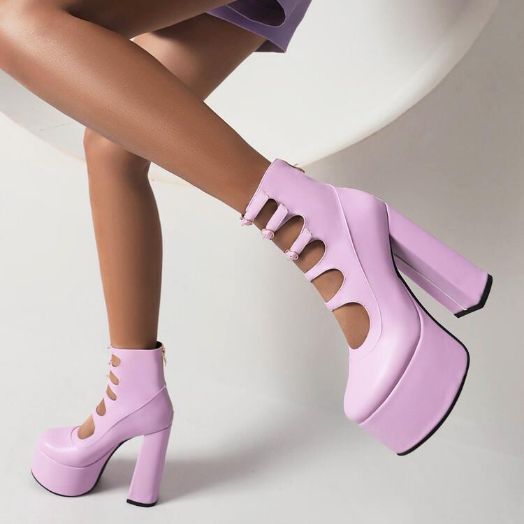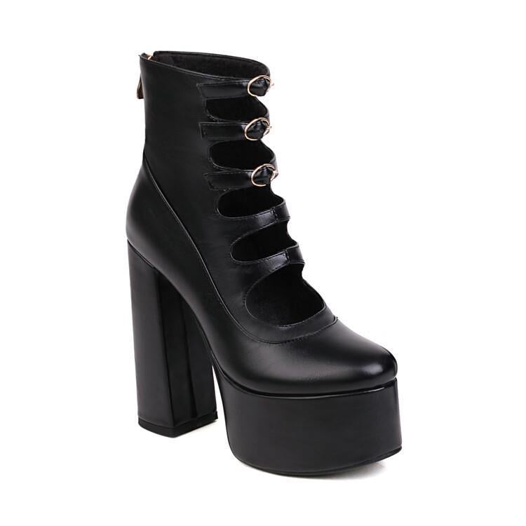 Round head waterproof platform belt buckle open back zipper thick with super high heel boots female 3 colors