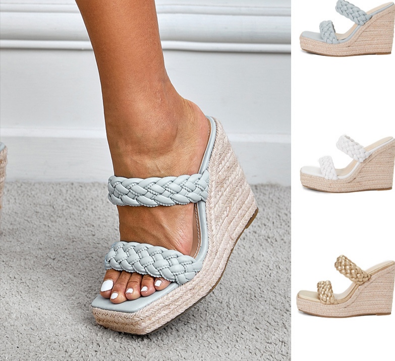 Braided Twist Strap High Heel Square Toe Thick Sole Wedge Sandals and Slippers for Women