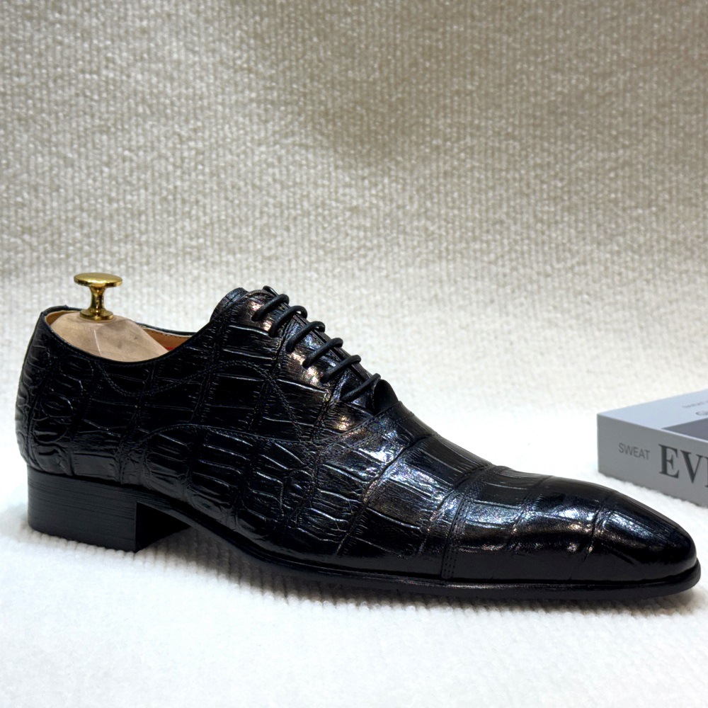 Men's business leather shoes hand-rubbed and embossed cowhide shoes