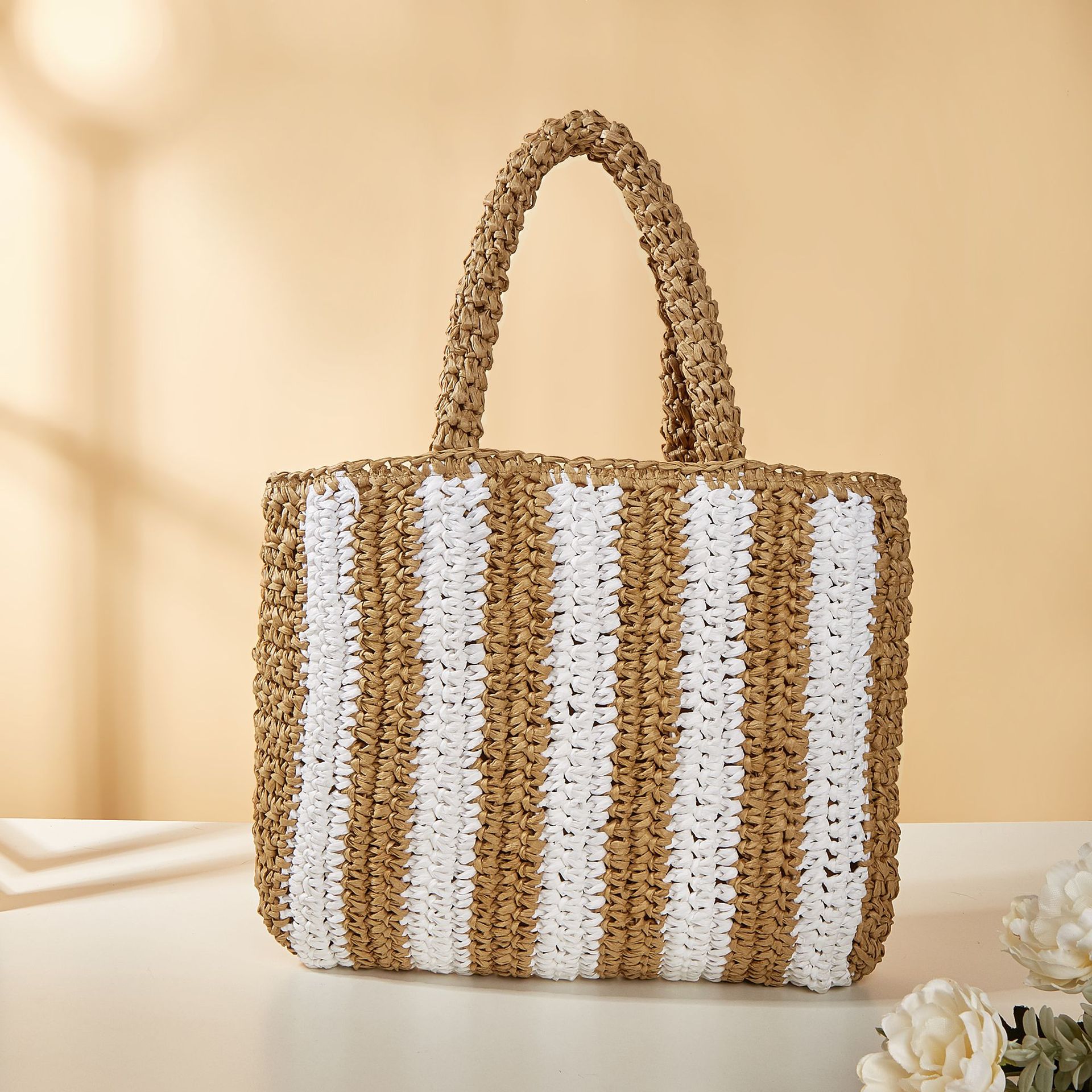 Stripe Tote Straw Bag Fashion Casual Beach Bag Satchel Vacation