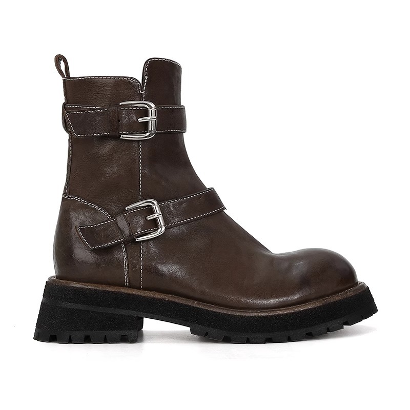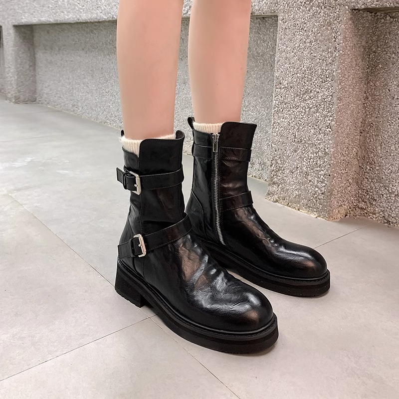 Washed calfskin leather platform ankle boots 2 colors