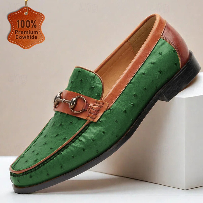 Top-layer cowhide loafers slip-on luxurious handmade finish with embossed pattern and color-brushed texture