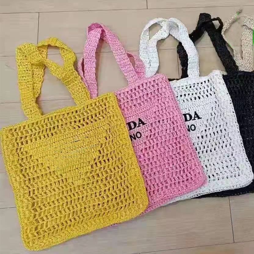 Crochet women's bag large-capacity shoulder bag hollow embroidered letter bag hand-woven bag straw woven bag