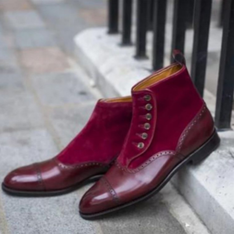 Men's Boots Stitching Button Boots Low Heel Ankle Boots Business Casual Boots