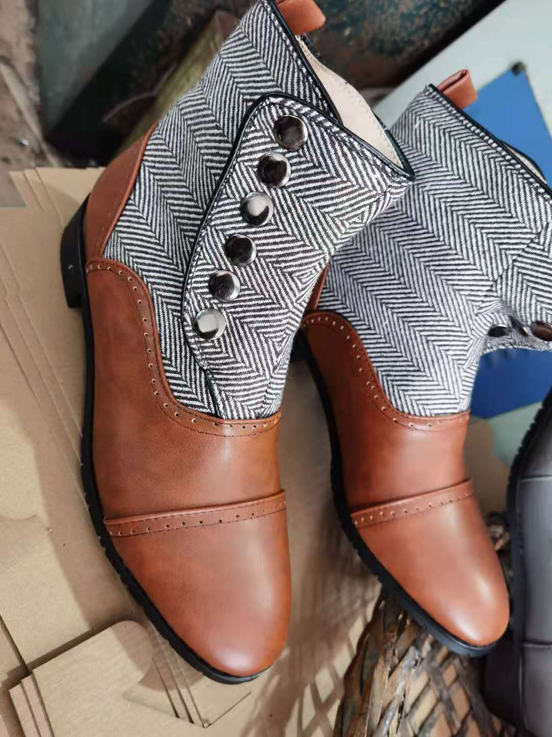 Men's Boots PU Stitching Button Boots Low Heel Ankle Boots Business Casual Boots