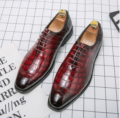 Oxford Shoes Men's PU Embossed Pattern Low Heel Lace Up Business Party Shoes